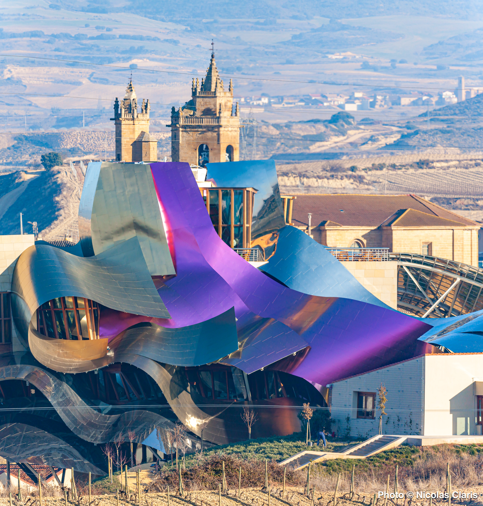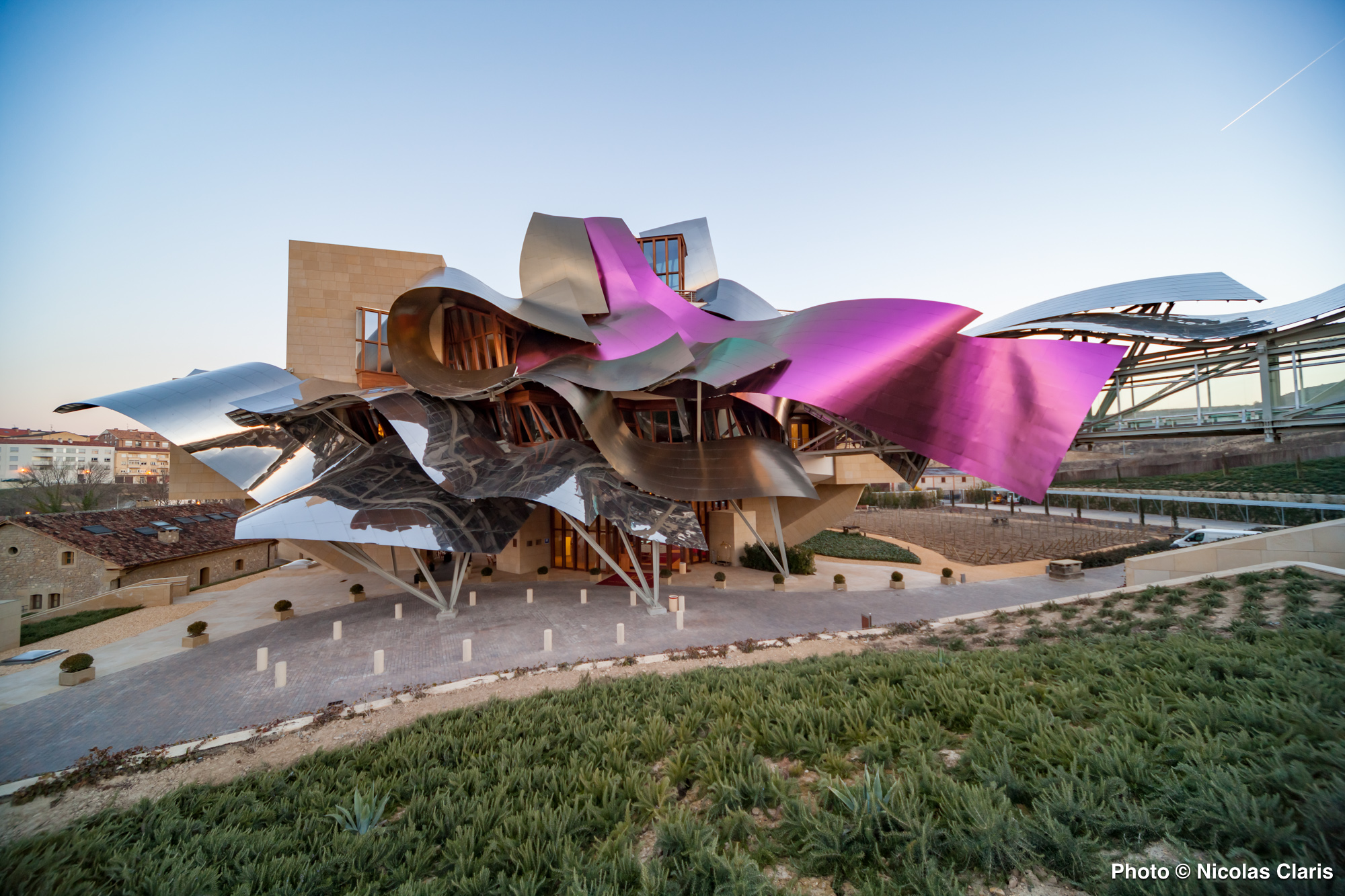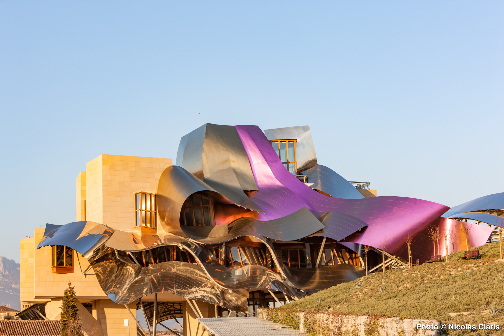 Conçu par Frank Gehry dans la région vinicole de la Rioja dans le Pays Basque espagnol, l’Hotel Marqués de Riscal domine les vignes se situe à 7 km de l’église Santa Maria de los Reyes et à 13 km du dolmen de la Chabola de la Hechicera.