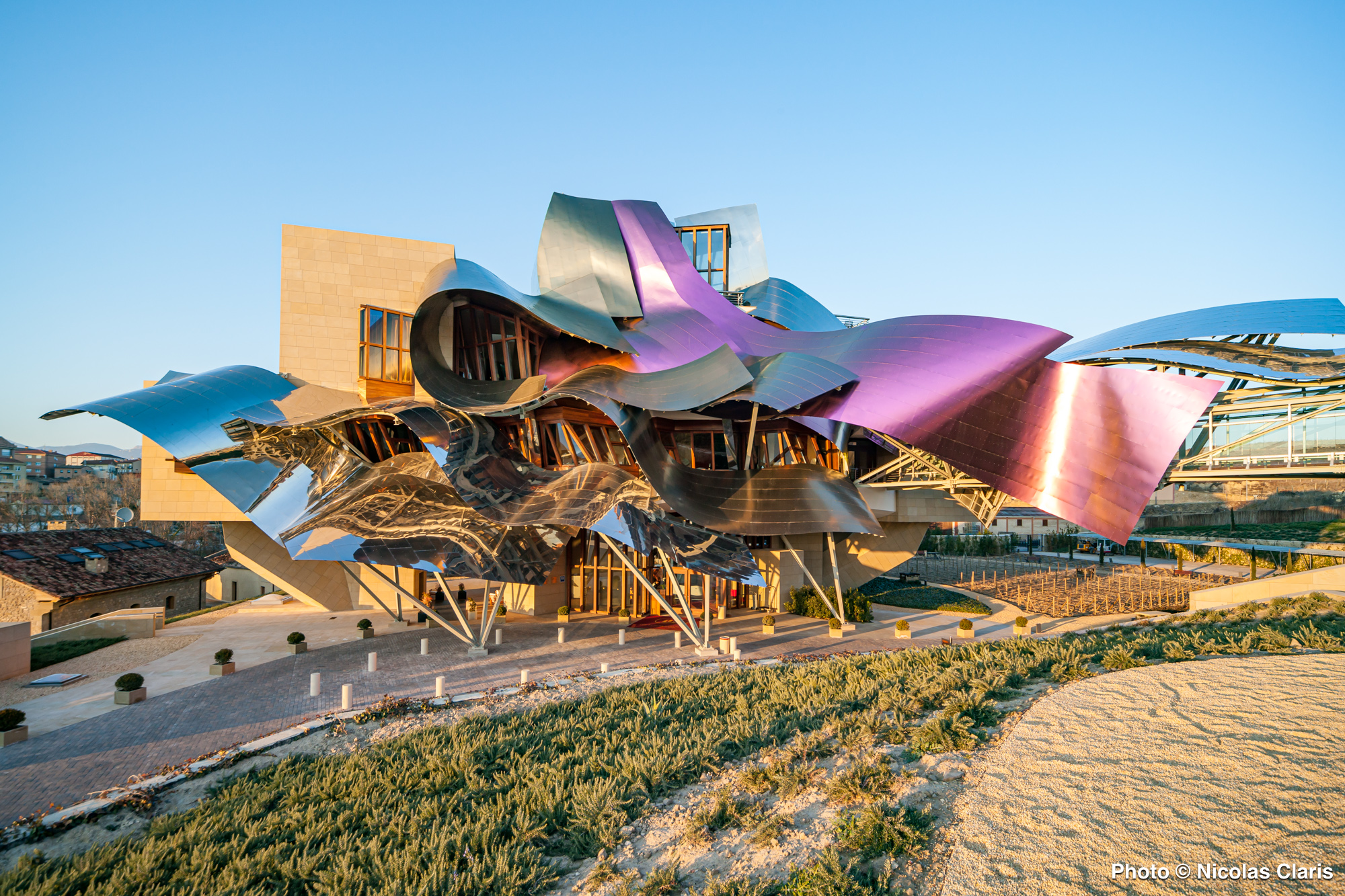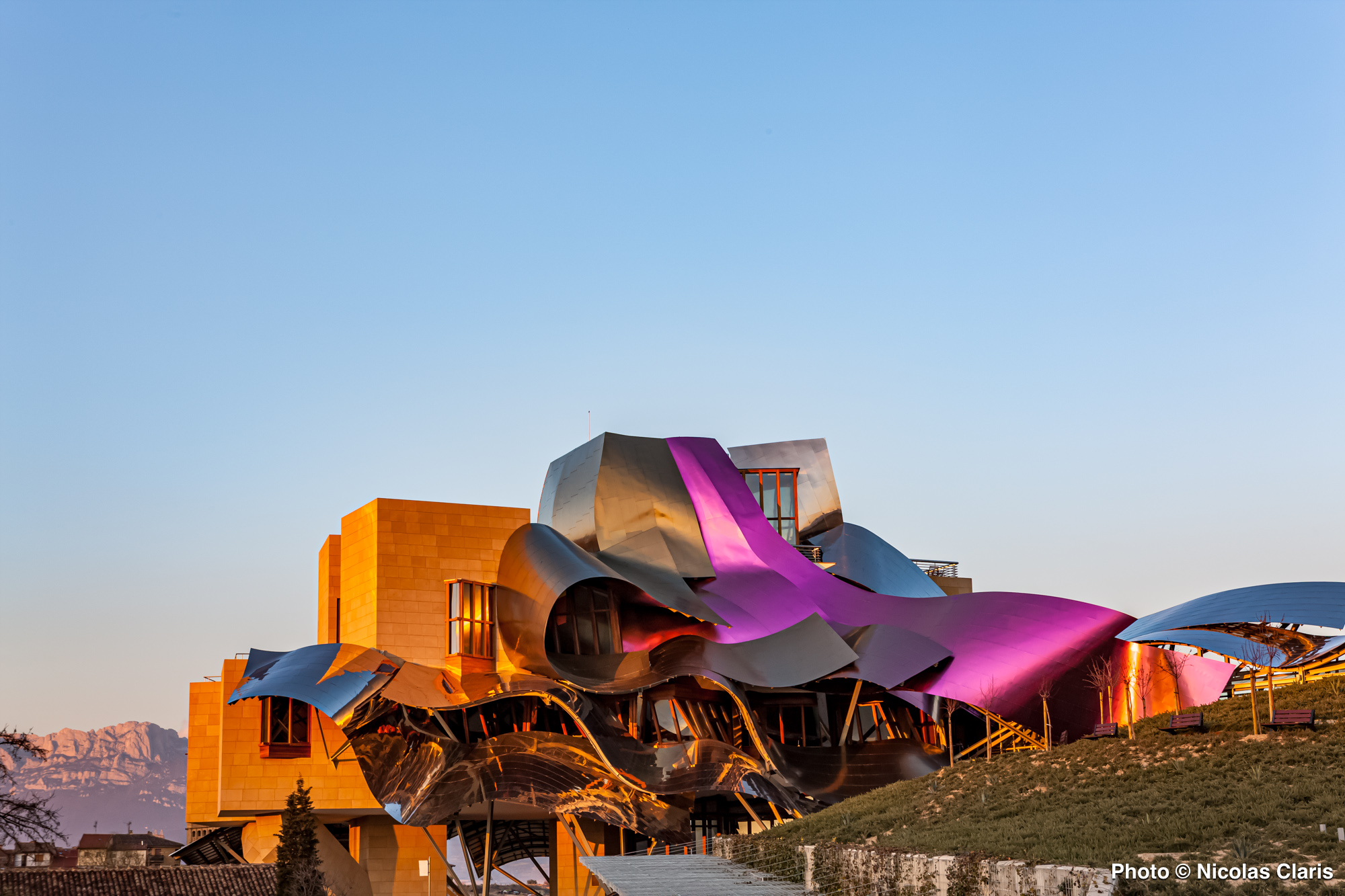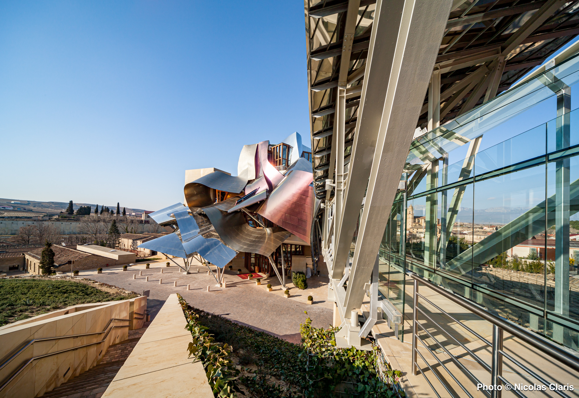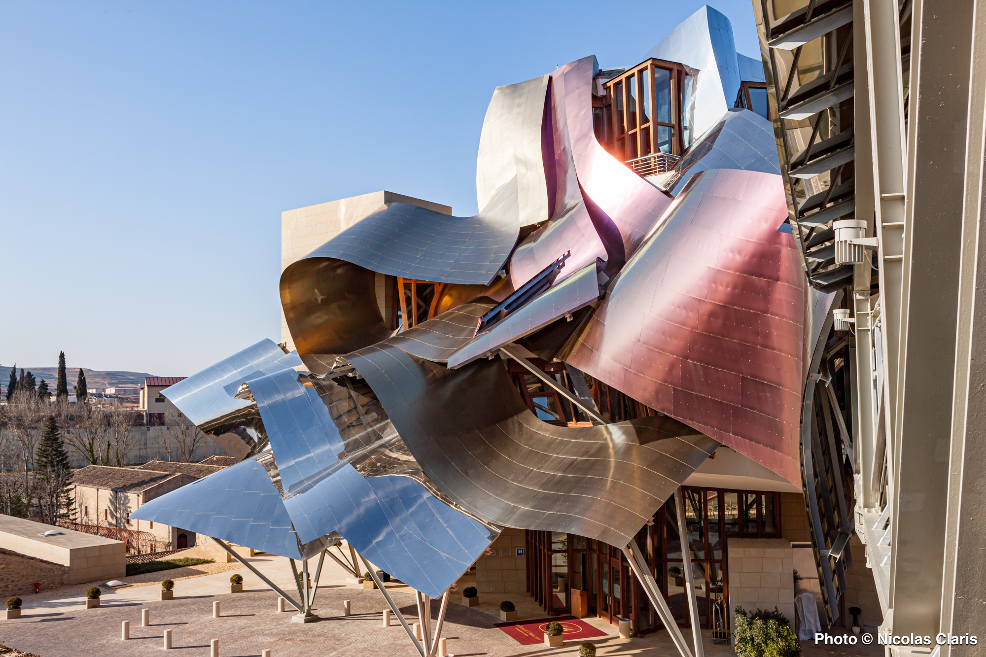 Conçu par Frank Gehry dans la région vinicole de la Rioja dans le Pays Basque espagnol, l’Hotel Marqués de Riscal domine les vignes se situe à 7 km de l’église Santa Maria de los Reyes et à 13 km du dolmen de la Chabola de la Hechicera.